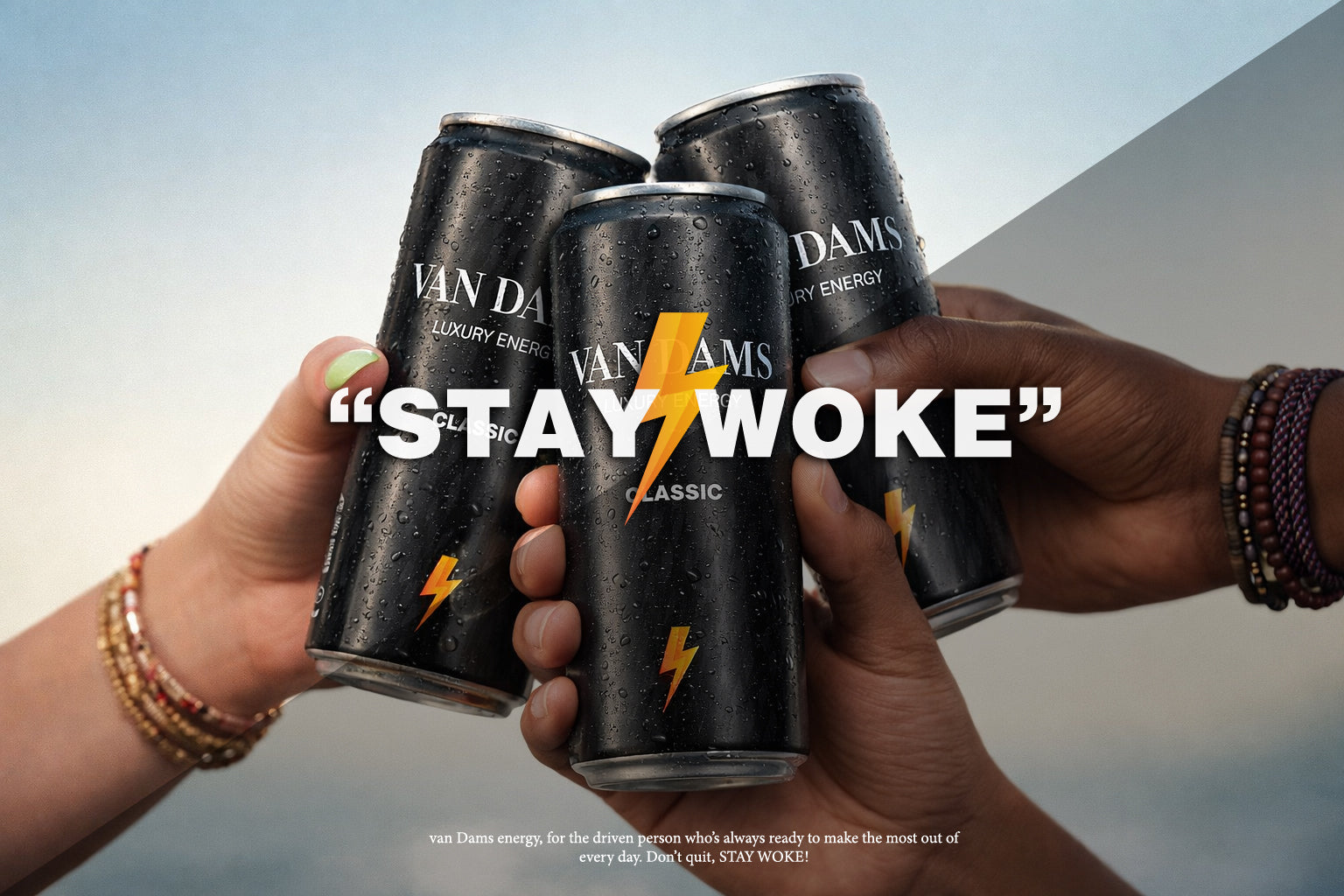 VAN DAMS energy is a luxury energy drink specially designed by a driven entrepreneur who works long days. Our innovative recipe keeps you awake and sharp, so that you can always perform at your best. With van Dams energy you don't have to give up, stay alert and focused. Don't quit, stay woke!